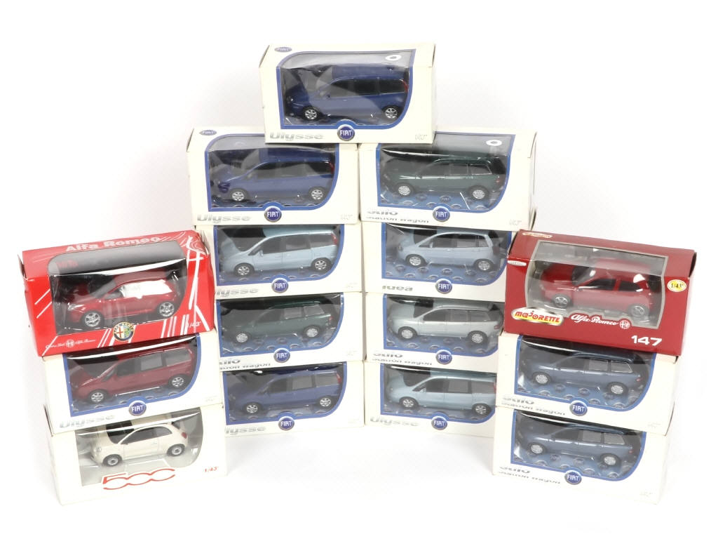 on y retrouve les marques : NOREV & MAJORETTE - comprend les modèles : FIAT & ALFA ROMEO - boîtes en états 'b' à 'c' - possibilité de manques & parties cassées