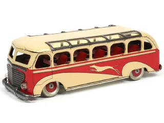 M.L. (FRANCE) 730 Autocar panoramique en tôle lithographiée 'LES GRANDS ITINERAIRES' rouge & crème