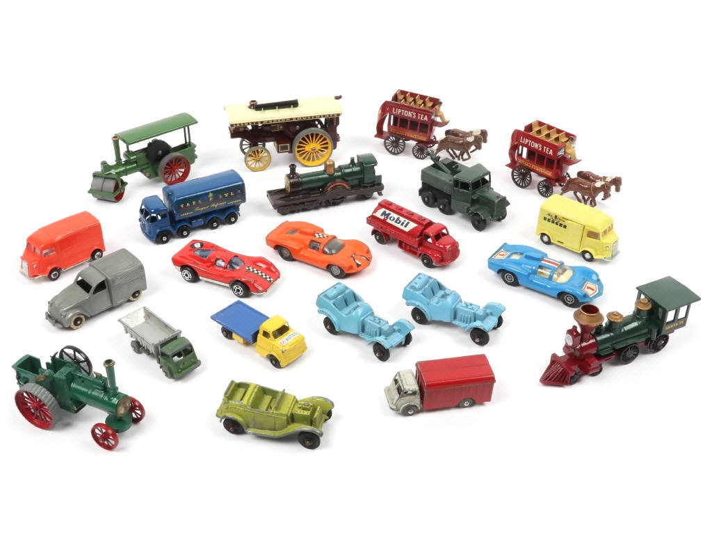 petite échelle autours du 1/87ème (réalisation en plastique & métal) - on y retrouve les marques : MATCHBOX, CIJ, CLE, NOREV (dont un modèle moderne), BUDGIE, CHAMPION, TOOTSIE & LONE STAR - petits manques & parties cassées