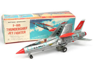 YONEZAWA TOYS (JAPON) 340 THUNDERCHIEF F-105 JET FIGHTER 'U.S. NAVY' gris métal, rouge & noir