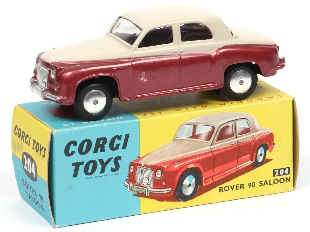 CORGI TOYS (GB) 204 ROVER 90 Saloon vieux rose métal & gris