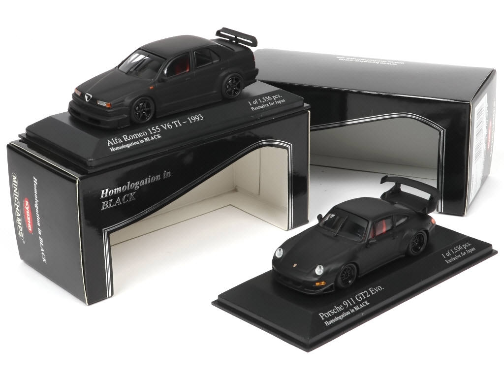 série 'HOMOLOGATION' limitée à 1536 exemplaires - modèles réalisés en exclusivité pour le marché japonais - comprend : PORSCHE 911 GT2 EVO & ALFA ROMEO 155 V6 TI 1993