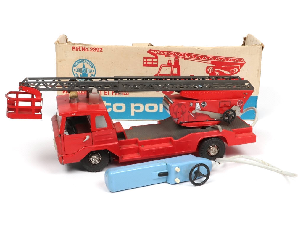 JOUSTRA (FRANCE) 2892 Camion grande échelle de pompiers téléguidé en tôle rouge