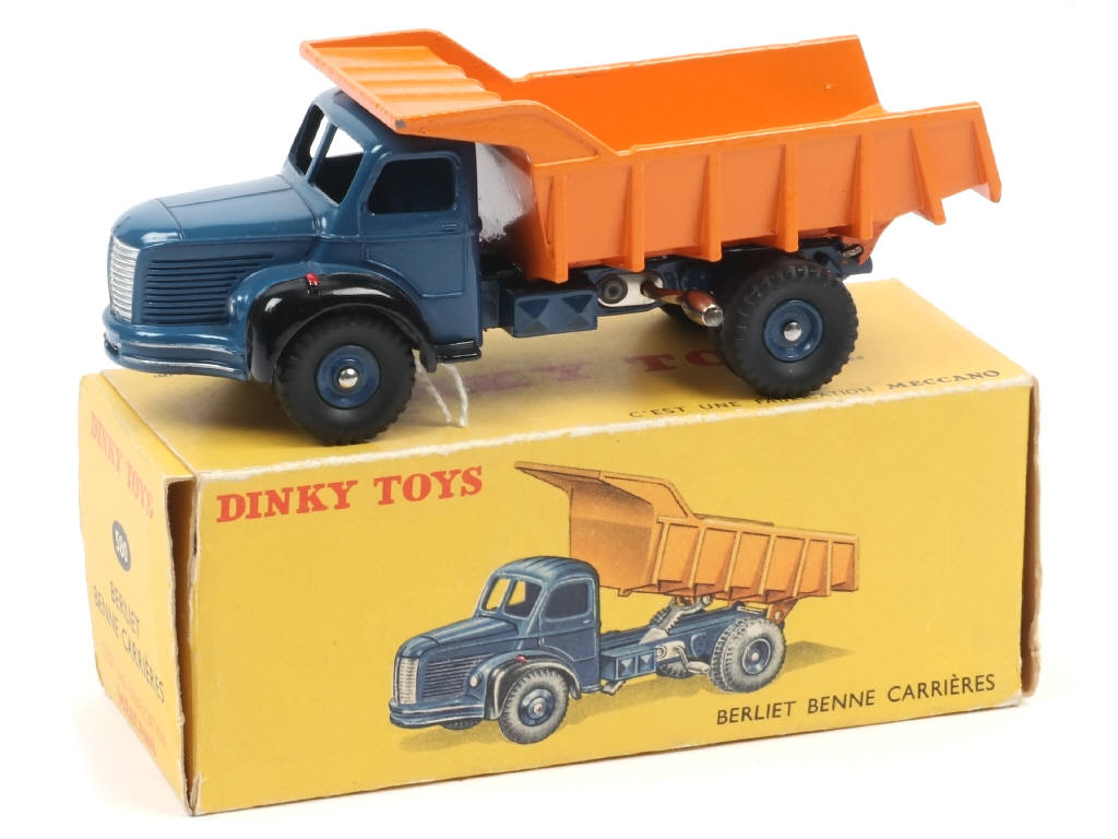 DINKY TOYS (FRANCE) 580 BERLIET Benne carrière MARREL (version avec jantes concaves) bleu foncé & orange