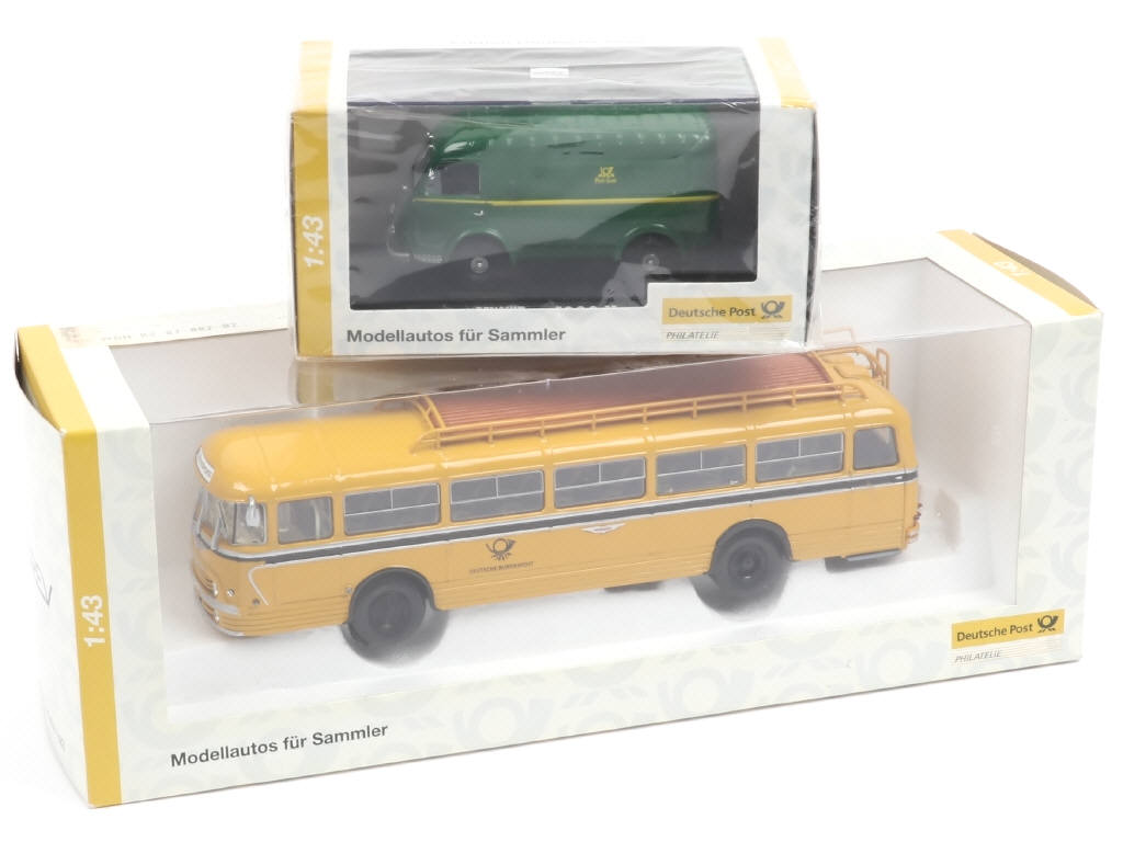 échelle 1/43ème - réalisé pour le marché allemand - comprend : CHAUSSON AP52 autocar & RENAULT 1000 kg fourgon tôlé
