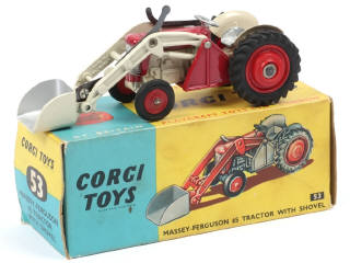 CORGI TOYS (GB) 53 MASSEY FERGUSON 65 Tracteur avec pelle chargeuse rouge & blanc cassé