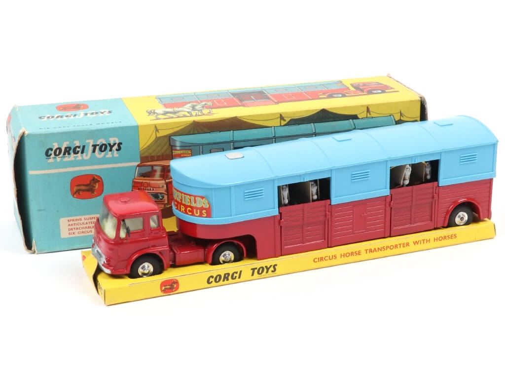 CORGI TOYS (GB) 1130 BEDFORD TK Transport de chevaux 'CHIPPERFIELDS CIRCUS' rouge & bleu ciel