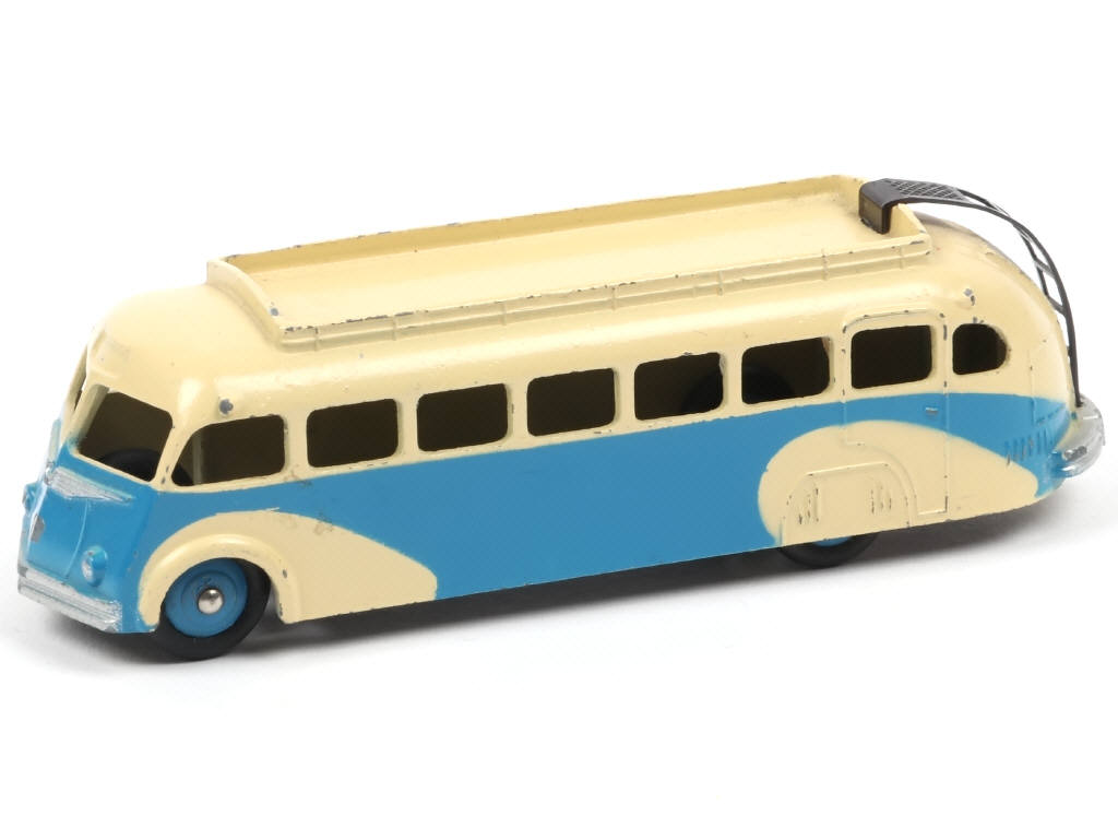 DINKY TOYS (FRANCE) 29E Autocar ISOBLOC (version avec galerie lisse & ailes au pochoir) bleu & crème