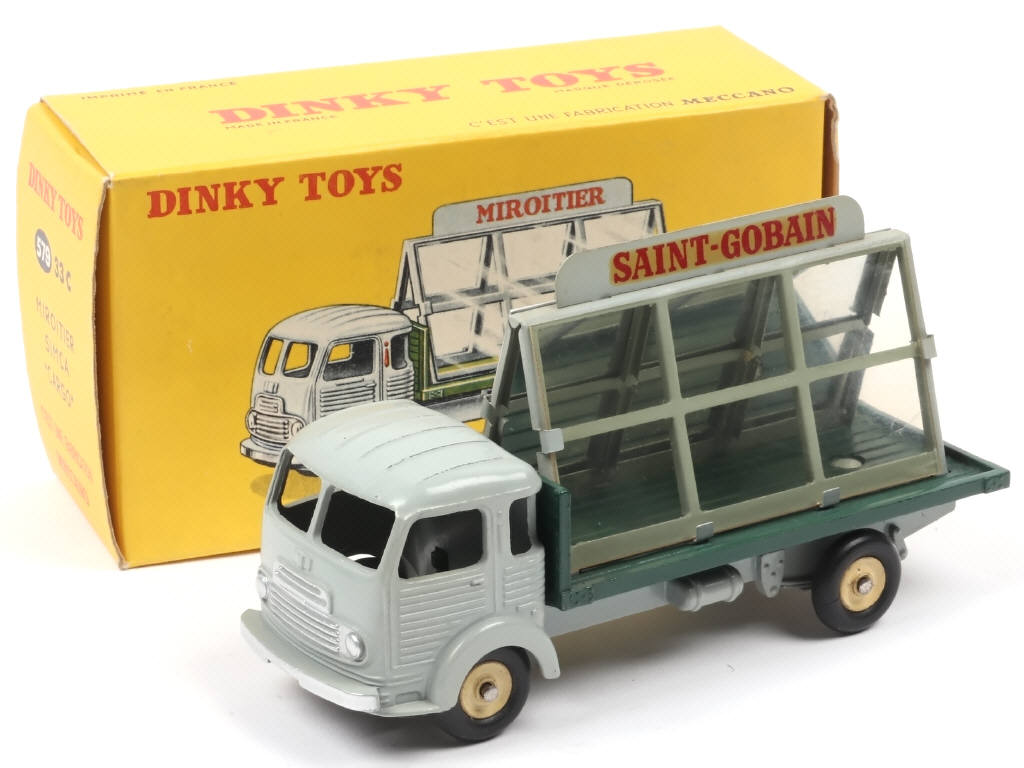 DINKY TOYS (FRANCE) 579 SIMCA CARGO Miroitier 'SAINT GOBAIN' (version avec jantes concaves) gris clair, plateau vert & jantes crème