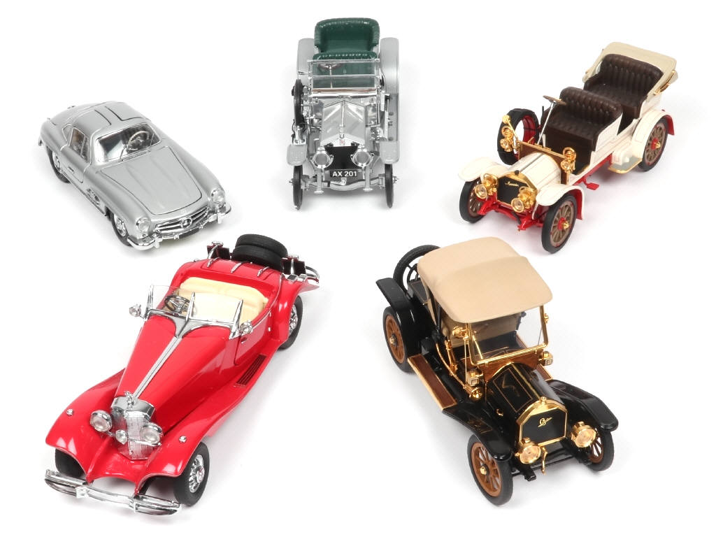 grandes échelles - miniatures reproduisant les modèles : MERCEDES, ROLLS ROYCE & CADILLAC - possibilité de petits manques & parties cassées