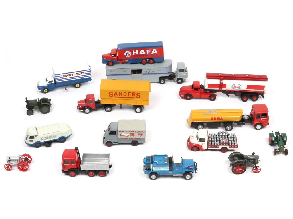quelques exemplaires avec transformations sur base - comprend notamment les modèles : BEDFORD, MAN, PEUGEOT, FORDSON & ACMAT - on y retrouve notamment les marques : ALTAYA, JRD, CORGI TOYS, DINKY TOYS & SOLIDO - avec manques, parties cassées et éléments non conformes