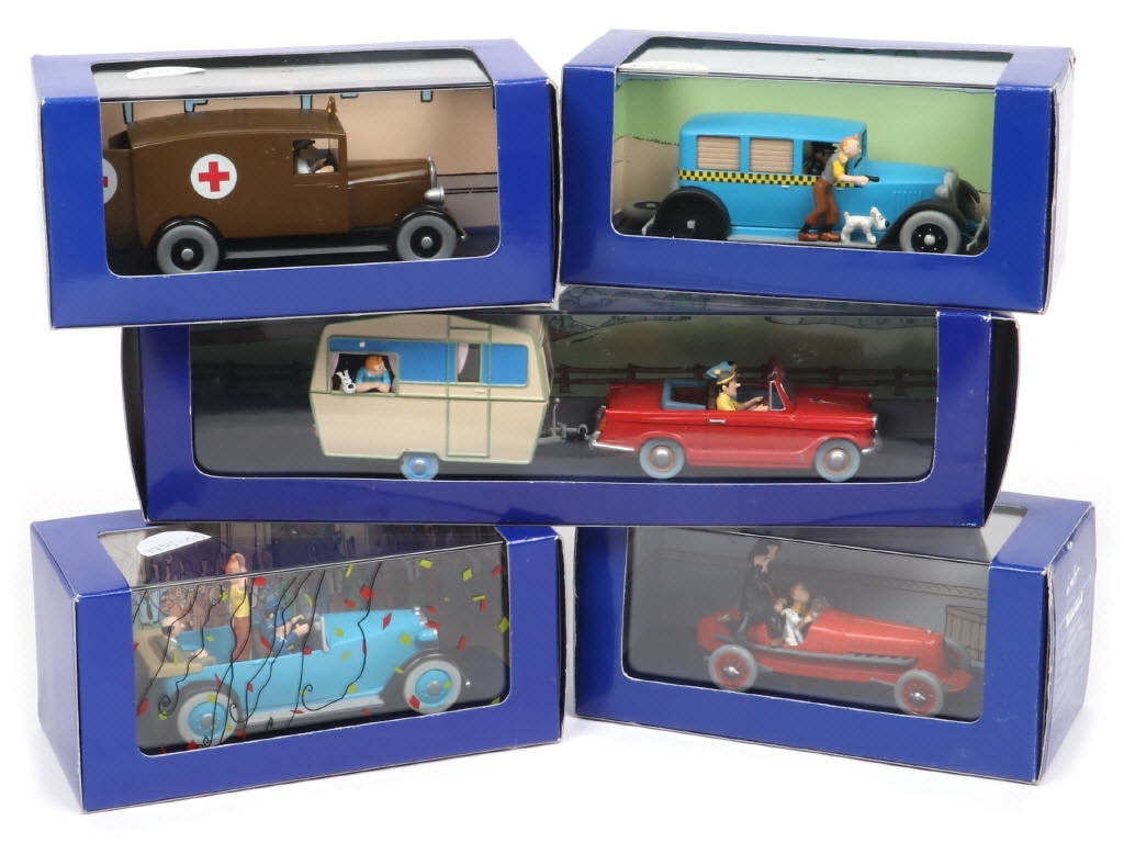 collection 'EN VOITURE TINTIN' - comprend les références : 2 118 029, 051, 004, 039 & 002 - étiquettes sur les boites