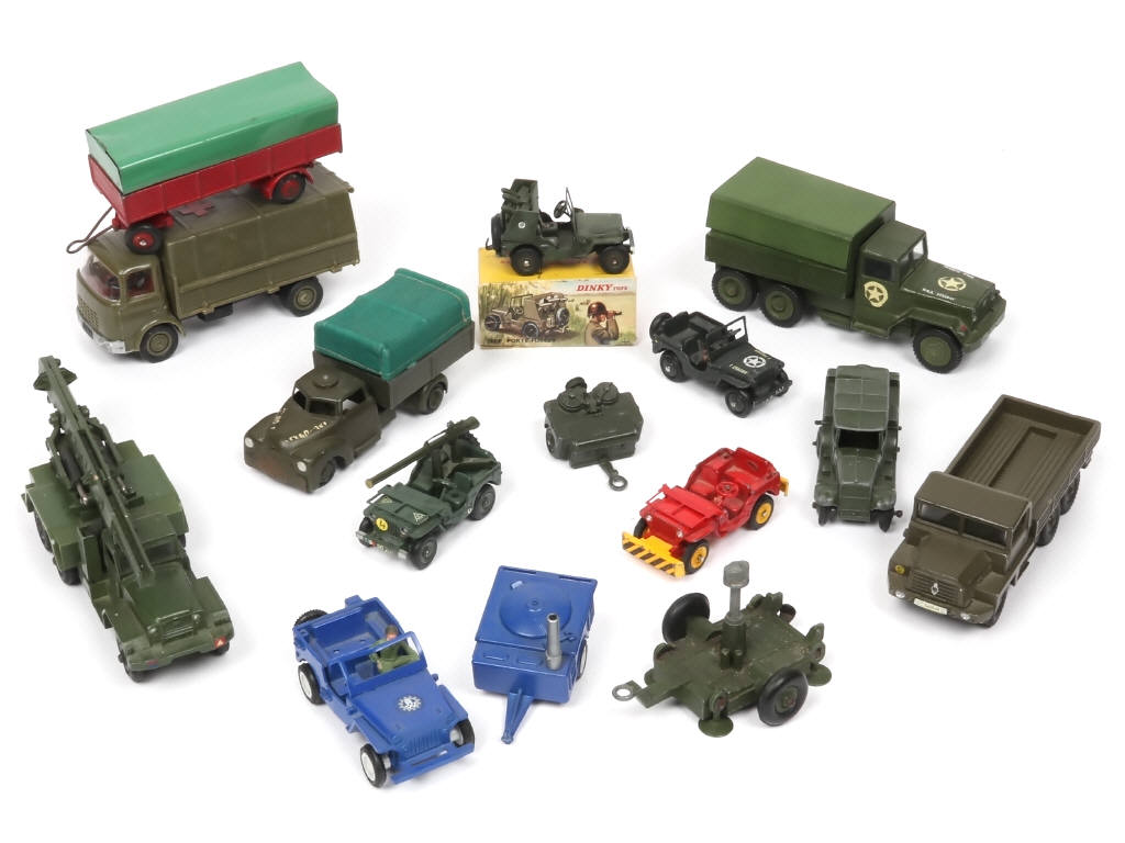 on y retrouve notamment les marques : DINKY TOYS, MINIALUXE, CORGI TOYS & TEKNO - avec manques, parties cassées, déformées & retouchées - un exemplaire avec boîte (état 'e')