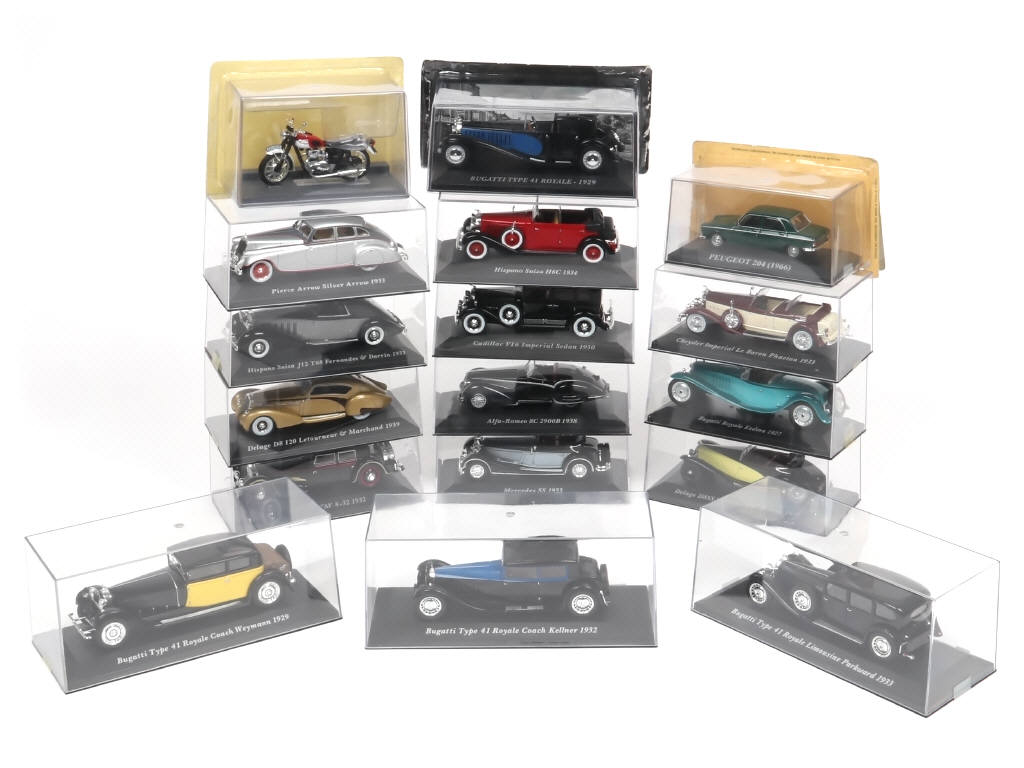 comprend notamment les modèles : CADILLAC, BUCCIALI, DELAGE, BUGATTI & CHRYSLER - on y retrouve notamment les marques : ALTAYA & COBRA - quelques boites en état 'c'