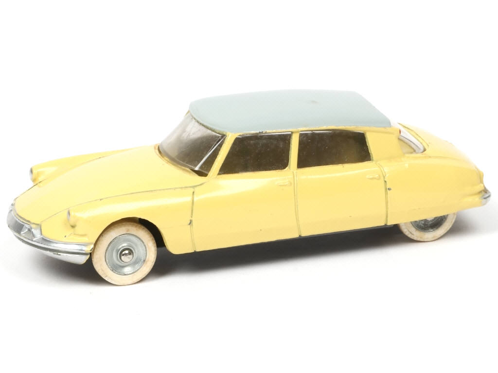 DINKY TOYS (FRANCE) 522 CITROËN DS 19 (version avec vitres & jantes concaves) jaune paille, toit gris clair