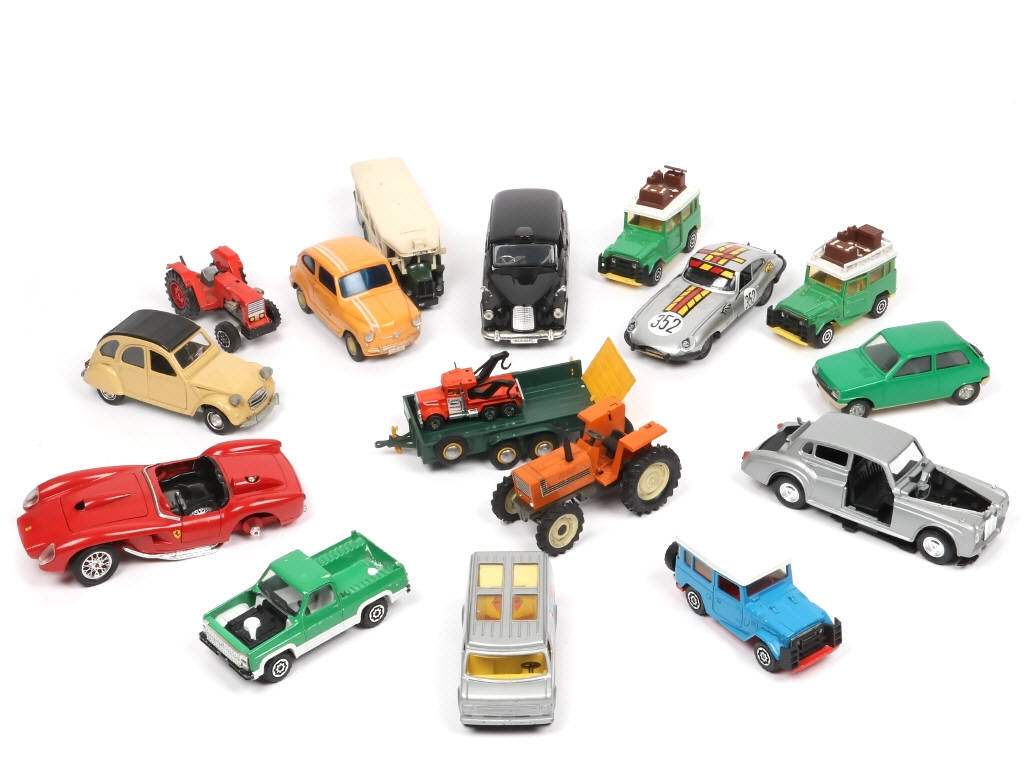 comprend notamment les modèles : ROLLS ROYCE, FERRARI, FIAT, AUSTIN & JAGUAR - on y retrouve les marques : GOZAN, POLISTIL, MAJORETTE & CORGI - quelques manques & parties cassées