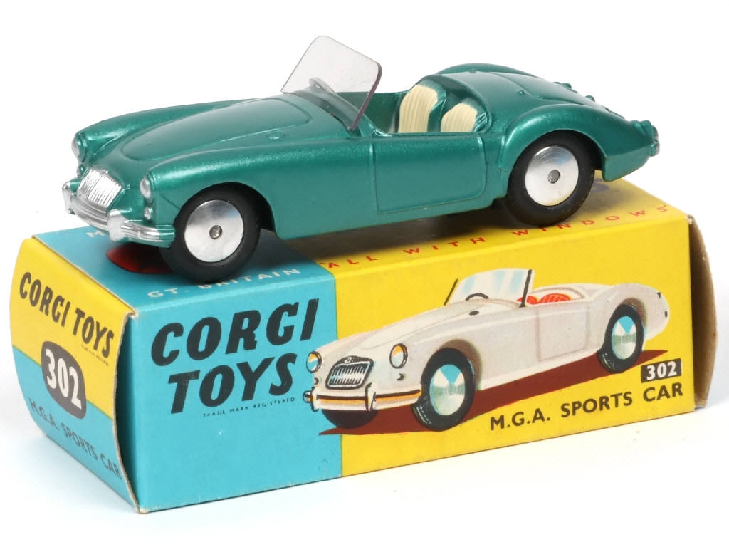 CORGI TOYS (GB) 302 MGA Cabriolet vert métal, sièges crème