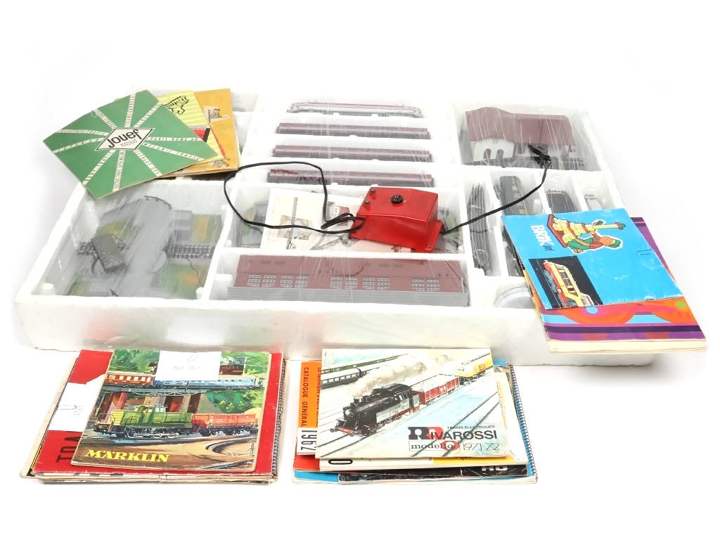 DIVERS (Ecartement HO) Ensemble d'un coffret de train & catalogues sur les trains miniatures