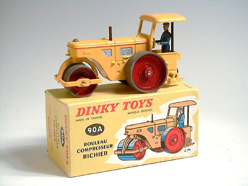 DINKY TOYS (FRANCE) 90A RICHIER Rouleau compresseur jaune & rouge