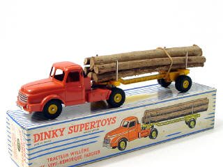 DINKY TOYS (FRANCE) 897 WILLEME Fardier (version avec jantes concaves & remorque non ajourée) brique & jaune