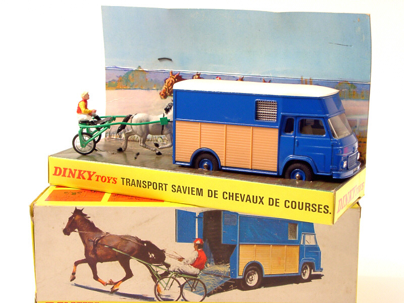 DINKY TOYS (FRANCE) 571 SAVIEM Goélette transport de chevaux bleu, bois, toit blanc