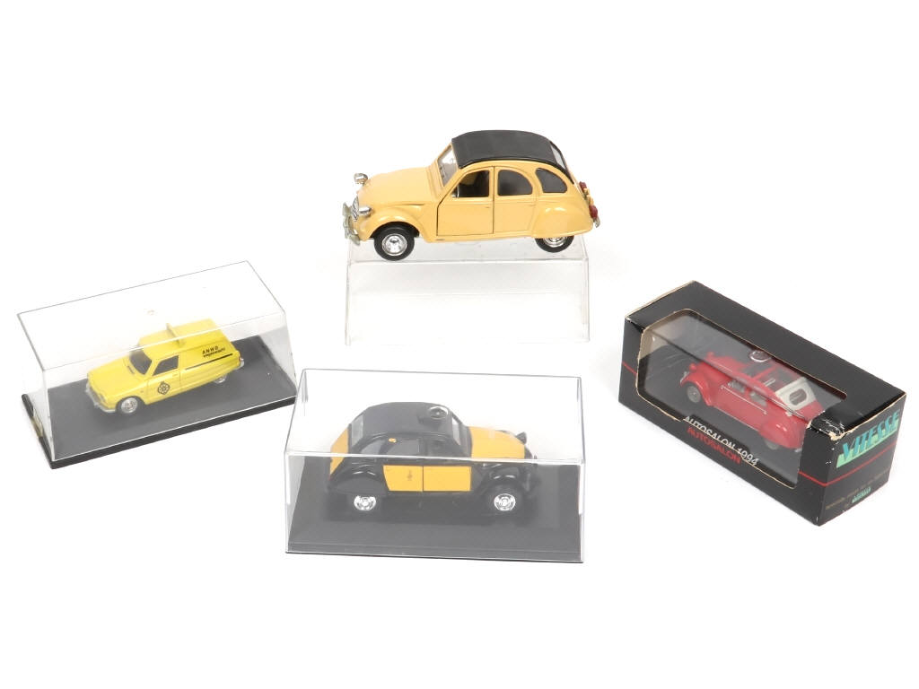 comprend notamment les modèles : 2 CV taxi barcelonais, décaporté (exemplaire fabriqué à l'occasion de l'AUTOSALON 1994) & AMI 6 break ANWB (kit - prototype) - un modèle sans boite - on y retrouve notamment les marques : VITESSE, GUISVAL & POLISTIL - boites en état 'b' dont une avec quelques accrocs