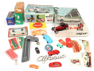 comprend notamment les modèles : CITROEN, JAGUAR & ALFA ROMEO - on y retrouve notamment les marques : BBURAGO, INGAP, RIO & POLISTIL - on y joint 2 boites vides en états 'b' & 'd' (manque socle) & des affichettes présentant les modèles ALFA ROMEO & JAGUAR