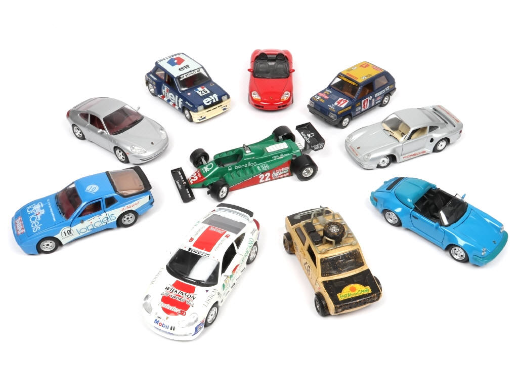 échelle 1/24ème - comprend notamment les modèles : FIAT, PORSCHE & RENAULT - on y retrouve notamment les marques : WELLY, BBURAGO, MAJORETTE & MAISTO - quelques petits manques & parties cassées