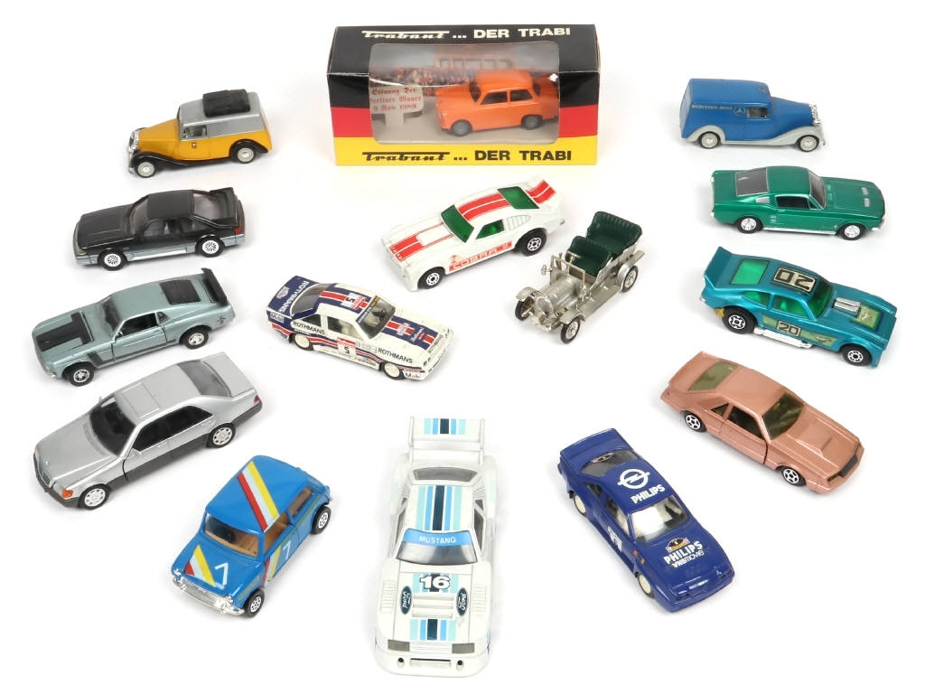comprend notamment les modèles : TRABANT, FORD, MERCEDES & MINI - on y retrouve notamment les marques : CORGI TOYS, VITESSE, ERTL, DINKY MATCHBOX & MATCHBOX - possibilité de petits éléments cassés & manquants
