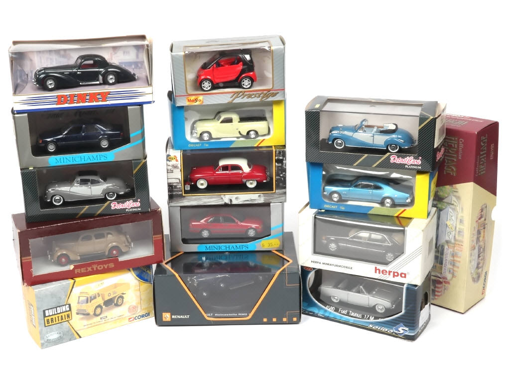 miniatures reproduisant notamment les modèles : MERCEDES, SMART & BMW - on y retrouve notamment les marques : MINICHAMPS, MAISTO & HERPA - possibilité de petits accessoires manquants - certaines boîtes en état 'c'