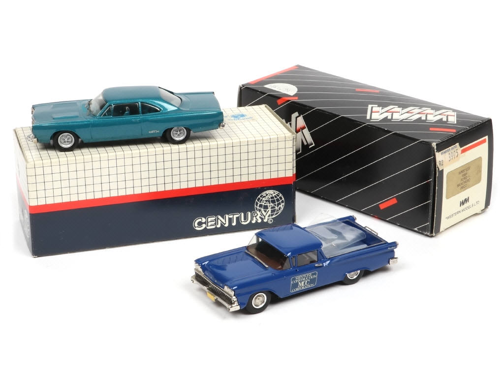comprend : FORD pick-up RANCHERO (série limitée pour 'MCC' - rétroviseur sous sachet) & PLYMOUTH GTX 1969 - on y retrouve les marques : CENTURY & WESTERN MODELS