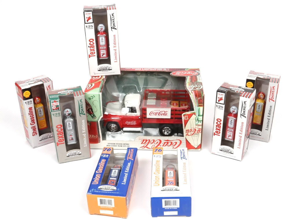 comprend : camion chevrolet brasseur 'COCA COLA' & 7 pompes à essence - on y retrouve notamment la marque GEARBOX