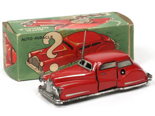 longueur : 13,5 cm - moteur à clef & mécanismes (fonctionnent, sans clef) - parties chromées plus ou moins ternies - rubans adhésifs & une étiquette collée sur la boîte (légères déformations)