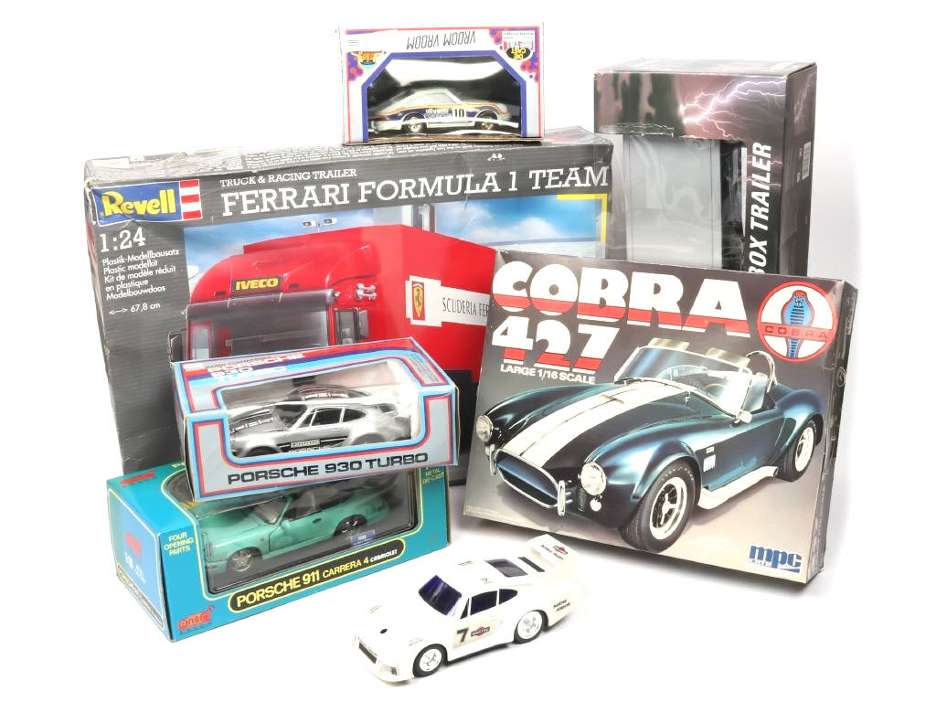différentes échelles - on y retrouve notamment les marques : REVELL, ANSON & MIRA - 3 exemplaires motorisés (non testés, un incomplet & sans boîte) - on y joint 2 maquettes à monter des marques REVELL & ERTL (semblent complets) - les boîtes sont en états 'b' & 'c'