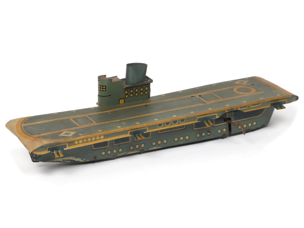 MEMO (FRANCE) 515 Porte avions en tôle lithographiée gris bleu, jaune & blanc cassé