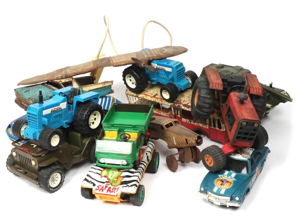différentes échelles - on y retrouve notamment les marques : JOUSTRA & TONKA - avec manques, parties cassées & oxydées (plus ou moins importants suivants les modèles)