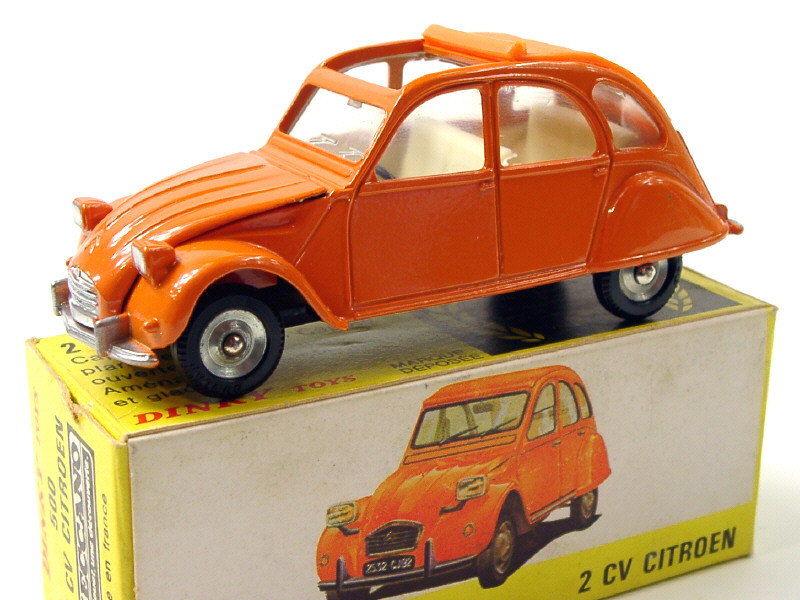 DINKY TOYS (FRANCE) 500 CITROËN 2CV Décapotée (made in SPAIN) orange avec plancher vissé & plaque minéralogique arrière argent