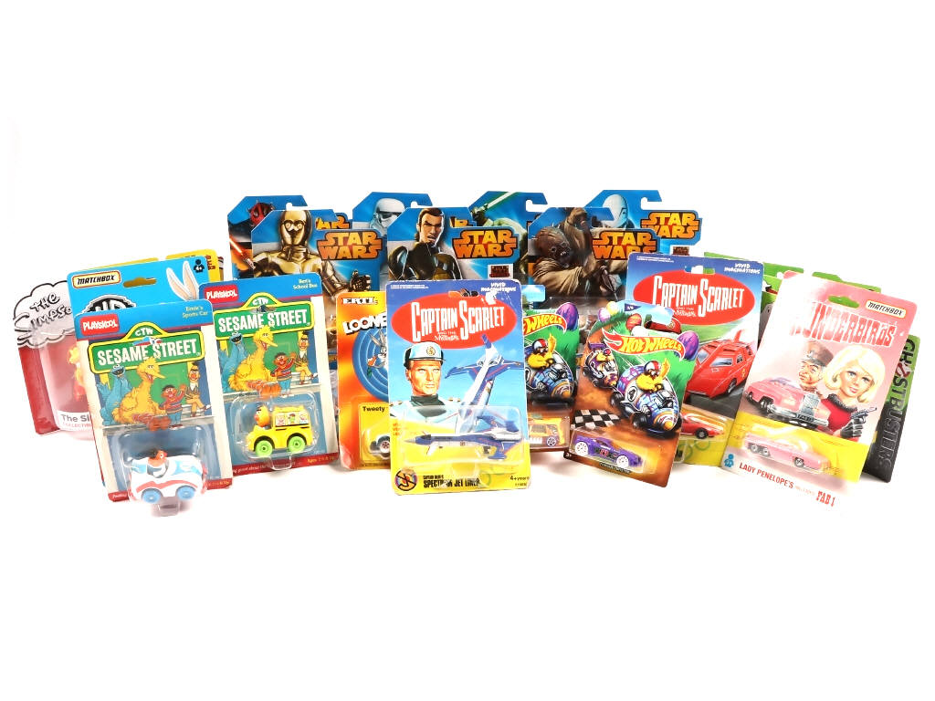 on y retrouve notamment les marques : HOT WEELS, PLAYSKOOL, MATCHBOX & MATTEL - les boîtes sont en états 'a' à 'b'