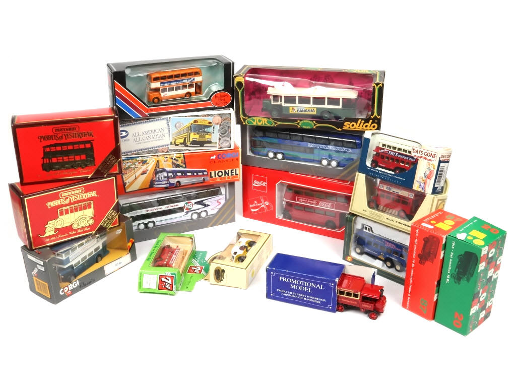 comprend notamment les modèles : NEOPLAN, AEC, FIAT & RENAULT - on y retrouve notamment les marques : SOLIDO, RIO, CORGI TOYS, LLEDO & MATCHBOX - boites en états 'b' & 'c'
