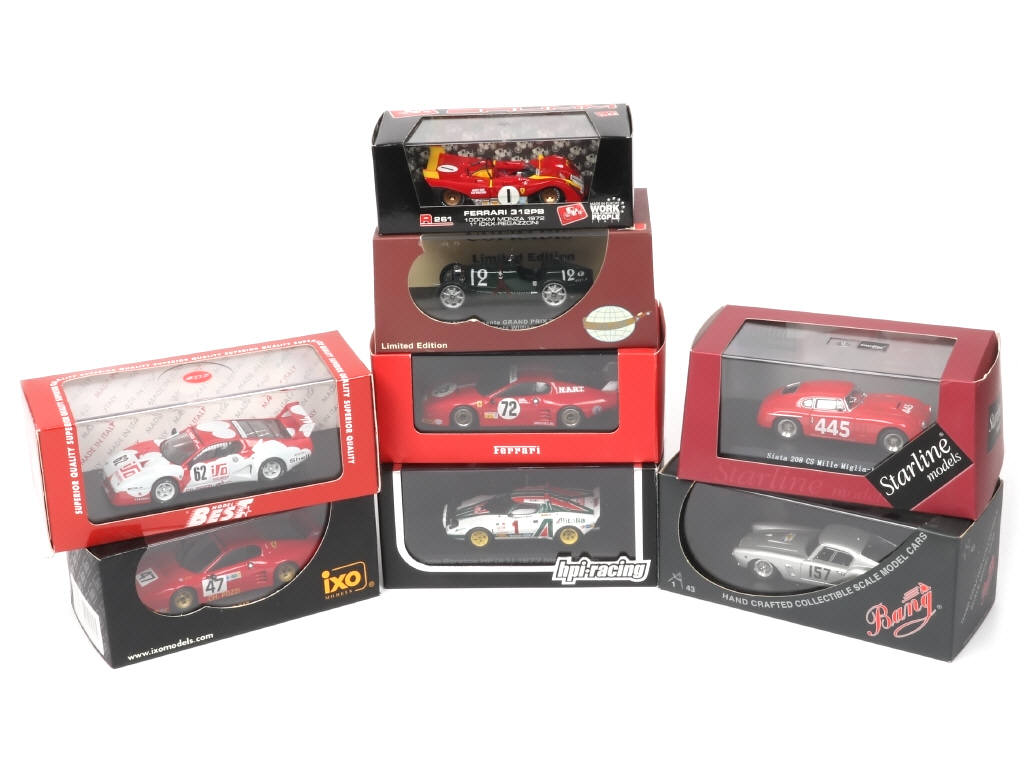 comprend : SIATA 802 Mille Miglia 1953, LANCIA STRATOS MC 1977, FERRARI 250 GT SWB TDF 1960, 312 PB Monza 1972, BB512 LM 1981, 1982, BB LM 1979 & BUGATTI 35B 1929, - on y retrouve les marques : BEST MODEL, IXO, BRUMM, STARLINE MODELS & HPI