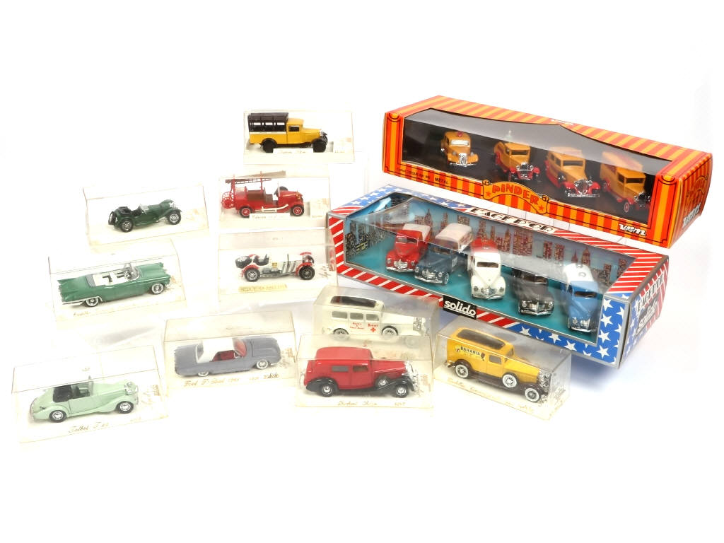 comprend les marques : SOLIDO & VEREM - on y retrouve 2 coffrets (PINDER & L'AGE D'OR) - comprend notamment les modèles : TALBOT, MERCEDES, CADILLAC & JAGUAR - boîtes en état 'b à c' (légèrement encrassées & déformées) - possibilité de petits manques & parties cassées