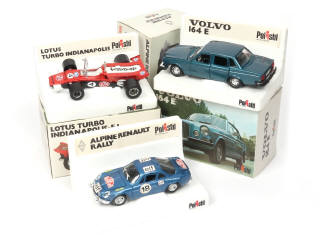 échelle : 1/25ème - miniatures reproduisant les modèles : ALPINE, LOTUS & VOLVO (quelques petits manques de pellicule argentée) - quelques accrocs sur les boîtes