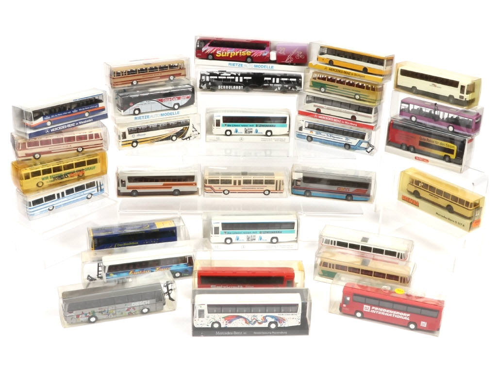 comprend les marques : WIKING, RIETZE, IMU & KEMBEL - on y retrouve les modèles : MERCEDES & SETRA - boîtes en états 'a à b'