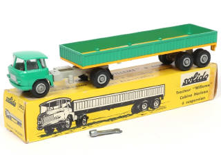 SOLIDO (FRANCE) 302 WILLEME Semi-remorque plateau à ridelles TITAN vert & jaune
