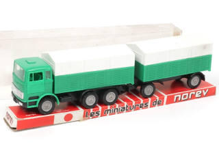 NOREV (FRANCE) 125 MERCEDES LP 2223 Plateau à ridelles bâché avec remorque bâchée vert, bâches blanches