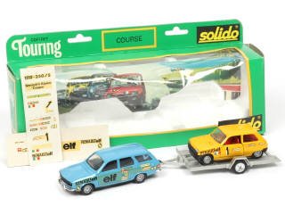 contient : RENAULT 12 Break 'ELF' & RENAULT 5 ALPINE 'ELF' sur remorque (2 planches de décalques présentes) - boîte légèrement déformée