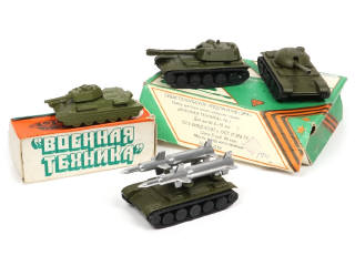 3 modèles réunis dans un coffret - comprend notamment les modèles : T54/55 1955 & T34/76 1941 - boites (avec cales) en états 'b' & 'c' avec étiquettes collées