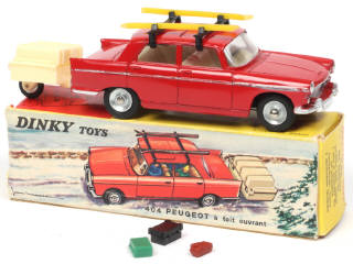DINKY TOYS (FRANCE) 536 PEUGEOT 404 avec remorque monoroue (skis jaunes) rouge