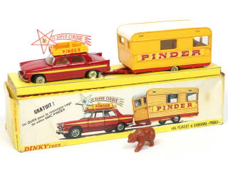 DINKY TOYS (FRANCE) 882 PEUGEOT 404 & Caravane 'PINDER' jaune, rouge & blanc