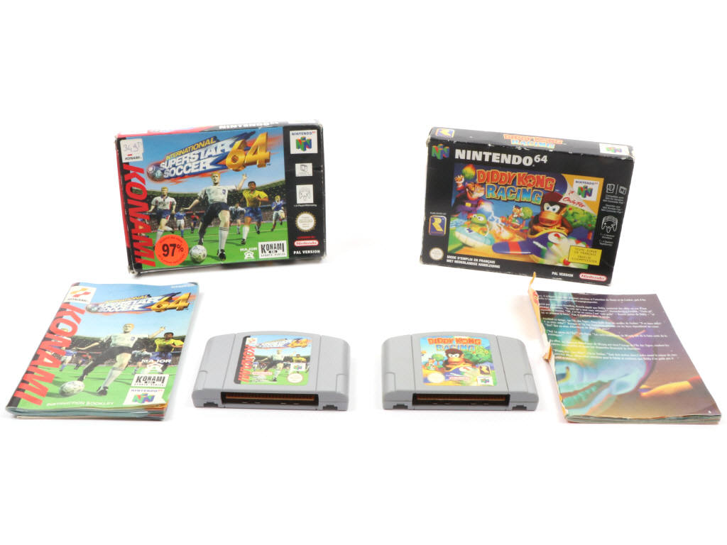 testé (fonctionne) - comprend : DIDDY KONG RACING & INTERNATIONAL SUPERSTAR SOCCER - manques de papier sur les boites - avec mode d'emploi (dont un déchiré)